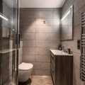 This 64 m² apartment is thoughtfully designed to accommodate up to 6 guests, making it perfect for families or small groups. The master suite offers a private shower room and WC, while the second bedroom features a comfortable double bed and an adjacent bathroom. A cozy cabin area with a trundle bed and additional shower ensures everyone has their own space. The living area, with its inviting sofa, armchairs, and extendable dining table, is ideal for relaxing evenings. The fully equipped kitchen, complete with a dishwasher, washing machine, oven, and freezer, makes preparing meals a breeze. Every detail, from the tasteful finishes to the practical amenities like private parking and Wi-Fi, ensures your stay is as comfortable as it is memorable.