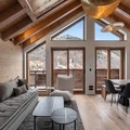 Designed to accommodate up to 12 guests, the chalet boasts five spacious bedrooms, each thoughtfully furnished for comfort and relaxation. The open-plan living area features a cozy fireplace, inviting you to unwind after a day on the slopes. A fully equipped kitchen and elegant dining space make it easy to share meals and create lasting memories. With premium amenities such as provided linens, towels, and à la carte services like ski pass delivery, equipment rental discounts, and in-home massages, every detail has been considered to enhance your stay.