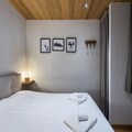 Spanning approximately 84m², this beautifully designed apartment comfortably accommodates up to six guests across three cozy bedrooms. The ground floor features an open-plan kitchen equipped with modern appliances, a welcoming living and dining area complete with a fireplace and a large sofa, and a spacious terrace perfect for après-ski relaxation. Upstairs, the bedrooms offer flexible sleeping arrangements, including a double bed and two single beds, along with a second terrace to enjoy the alpine air. Additional amenities such as a private garage, ski locker with boot dryer, and WiFi ensure a seamless and comfortable stay.