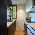 Spanning two levels, the 75 m² apartment has been thoughtfully designed to accommodate up to ten guests. On the ground floor, you’ll find a welcoming entrance hall with boot dryers, a ski storage room, and a cozy living area complete with a sofa, TV, and dining table. The fully equipped kitchen includes everything you need to prepare hearty meals after a day on the slopes, from a refrigerator and oven to a coffee machine and toaster. Upstairs, three inviting bedrooms await: two double rooms and a bunk room that sleeps four. Additional conveniences include three modern bathrooms, a washer-dryer, and ample storage space for all your belongings.