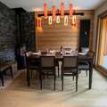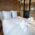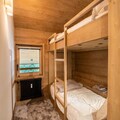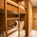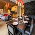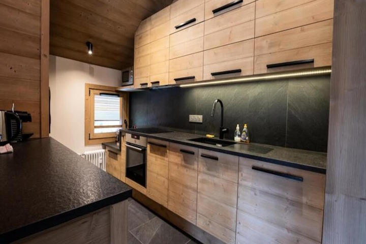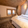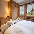 The apartment’s spacious layout is designed for relaxation and togetherness. A fully equipped kitchen opens into a bright and inviting living/dining area, where a wood-burning stove creates a cozy ambiance after a day on the slopes. The property comfortably accommodates up to ten guests across four bedrooms, including a master suite with an en suite bathroom, a second double bedroom, a bunk room, and a versatile room with two single beds and a mezzanine with additional sleeping space. Modern amenities such as Wi-Fi, a Nespresso machine, a dishwasher, and a washing machine ensure a stress-free stay, while thoughtful touches like a raclette grill and firewood add to the alpine experience.