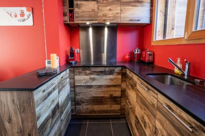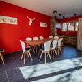 Spread across two spacious levels, the chalet is thoughtfully designed to accommodate up to ten guests. The ground floor boasts a large and inviting living area, complete with a fireplace, plush seating, and a Bluetooth speaker to set the mood. The open-plan kitchen is a culinary dream, equipped with everything from a Thermomix to a raclette grill, perfect for preparing hearty mountain meals. Upstairs, you'll find four beautifully appointed bedrooms, including two with en-suite bathrooms, ensuring privacy and comfort for all. A dormitory-style room adds a playful touch, making it ideal for families or groups of friends. Modern amenities such as Wi-Fi, a laundry room, and a ski locker with a boot dryer ensure a seamless stay.