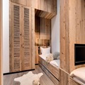 Spanning an impressive 270m², this duplex accommodates up to 15 guests across seven beautifully designed bedrooms, each with its own en-suite bathroom. The interiors blend contemporary sophistication with chalet-style warmth, featuring plush furnishings, natural wood accents, and large windows that flood the space with light. The common areas are equally inviting, offering a spacious living room for cozy evenings, a fully equipped kitchen for gourmet meals, and access to luxurious amenities such as an indoor pool, spa with sauna and hammam, fitness room, and even a dedicated kids' area. Every detail has been carefully curated to ensure comfort and relaxation.