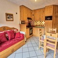 Designed to accommodate up to eight guests, the 42m² apartment boasts a warm mountain-style decor and high-quality amenities. The living room features a flat-screen TV, DVD player, and a comfortable sofa bed, while the open-plan kitchen is fully equipped with a ceramic hob, oven, microwave, dishwasher, and even a washer-dryer for added convenience. The sleeping arrangements include two cozy bedrooms and a sleeping alcove, ensuring comfort and privacy for families or groups of friends. A modern bathroom with a shower and a separate toilet complete the layout, while the private covered parking and ski locker make your stay hassle-free. Pets are welcome too, so no family member is left behind.