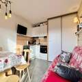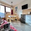 In the serene embrace of the French Alps, this charming apartment in the Les Balcons du Charvin residence offers a perfect retreat for mountain enthusiasts. Situated in the picturesque village of Notre Dame de Bellecombe, the property combines modern comfort with the timeless allure of alpine living. Whether you're visiting in winter or summer, this location promises unforgettable moments surrounded by breathtaking landscapes and authentic Savoyard charm. \n\nThis cozy 27m² ground-floor apartment, renovated in 2022, is designed to accommodate up to four guests. Its modern mountain-style decor creates a warm and inviting atmosphere. The living room features a 104cm flat-screen TV with BOSE speakers, perfect for relaxing after a day of adventure. The open-plan kitchen is equipped with two induction hobs, a combination microwave oven, and a refrigerator, making meal preparation a breeze. The sleeping arrangements include a double bed in the bedroom, bunk beds in a sleeping alcove, and a sofa in the living room. The southwest-facing terrace offers stunning views of the forest and surrounding mountains, while the outdoor space provides a safe area for children to play. Additional amenities include a ski locker and unreserved outdoor parking. \n\nLocated just 600 meters from the Espace Diamant ski area and ski school, the apartment is ideal for winter sports lovers. A ski shuttle stops only 100 meters away, ensuring easy access to 192 km of slopes connecting six charming alpine villages. In summer, the residence is a gateway to hiking trails, mountain biking circuits, and the Mont Rond chairlift, which offers panoramic views of Mont Blanc. The nearby Flumet lake, just 4 km away, is perfect for swimming and family fun. The village center, with its shops, restaurants, and entertainment, is only 400 meters from the property, making it easy to enjoy the local culture and cuisine. \n\nWhether you're seeking thrilling outdoor adventures or peaceful relaxation, this apartment provides the perfect base for exploring the beauty and charm of the French Alps. With its convenient location, modern amenities, and stunning surroundings, it’s an ideal choice for families and couples alike.