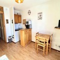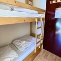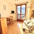 Inside, the studio is thoughtfully designed for comfort and functionality. The living room, adorned with warm mountain-style decor, features a television and a double sofa bed. The open-plan kitchen is equipped with essential appliances, including a mini-oven, microwave, and refrigerator, making it easy to prepare meals after a day on the slopes. An alcove with bunk beds adds to the sleeping arrangements, accommodating up to four guests. The bathroom includes a bathtub, and a separate toilet ensures convenience. Additional amenities such as a ski locker and unreserved outdoor parking enhance your stay.