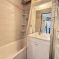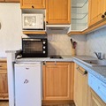 The apartment, located on the second floor of the Les Balcons du Charvin residence, is thoughtfully designed to accommodate up to six guests. It features a comfortable living room with a flat-screen TV, an open-plan kitchen equipped with modern appliances, and a mountain-inspired decor that adds a warm, inviting touch. The sleeping arrangements include a double bedroom, a sleeping alcove with bunk beds, and a sofa bed in the living room, ensuring ample space for families or groups of friends. Practical amenities such as a dishwasher, washing machine, and ample storage make your stay even more convenient.