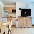 In the serene embrace of the French Alps, this charming apartment in the Les Chalets des Evettes residence offers a perfect retreat for mountain enthusiasts. With its prime location at the foot of the Espace Diamant ski slopes, you’ll wake up to breathtaking alpine views and the promise of adventure just steps from your door. Whether you’re seeking the thrill of skiing or the tranquility of mountain trails, this is your gateway to a world of natural beauty and outdoor activities. \n\nDesigned to comfortably accommodate up to four guests, the apartment features a cozy living room with an open-plan kitchen, equipped with modern appliances such as a microwave, dishwasher, and refrigerator. The living area opens onto a west-facing balcony, perfect for soaking in the sunset after a day of exploration. The sleeping arrangements include a bedroom with bunk beds and a sofa bed in the living room, ensuring restful nights for all. A bathroom with a bathtub and a separate toilet add to the convenience, while the mountain-inspired decor creates a warm and inviting atmosphere. \n\nBeyond the residence, the Espace Diamant ski area offers 192 km of slopes connecting six picturesque village resorts, catering to skiers of all levels. In summer, the region transforms into a haven for hikers and mountain bikers, with trails starting right from the residence. The nearby Evettes chairlift provides access to panoramic views of the Aravis mountain range, while the Flumet lake and leisure center, just 3 km away, offer family-friendly activities such as mini-golf, a skate park, and a climbing tower. \n\nWhether you’re exploring the elegant streets of Megève, marveling at Mont Blanc in Chamonix, or enjoying the crystal-clear waters of Lake Annecy, this apartment is your ideal base for unforgettable alpine adventures. With its heated indoor pool, convenient amenities, and proximity to nature, it promises a vacation filled with comfort, excitement, and cherished memories.