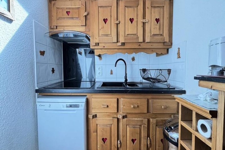 This cozy 37m² apartment, designed to accommodate up to six guests, combines modern comfort with mountain-style decor. The living room opens onto a south-facing balcony, offering breathtaking views of the ski slopes. The open-plan kitchen is fully equipped with an induction hob, combination oven, refrigerator, freezer, and dishwasher, making it easy to prepare meals for your group. The sleeping arrangements include two comfortable bedrooms with double beds and a sofa bed in the living room, ensuring restful nights for all. Additional features include a bathroom with a bathtub, a guest toilet, a ski locker, and two private covered parking spaces.