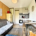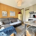 Designed for up to six guests, the apartment is most comfortable for four, ensuring a spacious and enjoyable stay. The layout includes a welcoming living area with a sofa bed, a fully equipped open-plan kitchen, and a charming bedroom with a double bed and dressing room. The alcove with bunk beds adds a playful touch for younger guests. Modern amenities such as a washing machine, television, and a private ski locker make your stay convenient and stress-free. The residence also boasts dedicated parking for added ease.