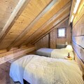 Amid the breathtaking alpine scenery of Notre Dame de Bellecombe, this charming Savoyard chalet offers a unique retreat for those seeking tranquility and adventure. Surrounded by majestic peaks and nestled just 500 meters from the Boulangère ski lift, it provides seamless access to the renowned Espace Diamant ski area, boasting 192 km of interconnected slopes. Whether you're here to carve through pristine snow or explore lush summer trails, this chalet is the perfect base for your mountain escape. The southwest-facing balcony invites you to soak in panoramic views of the surrounding peaks, including the iconic Mont Blanc, while enjoying the crisp alpine air. \n\nInside, the chalet blends traditional charm with modern comfort. The main level features a fully equipped kitchen that opens onto a cozy living and dining area, perfect for sharing meals and stories after a day of adventure. A double bedroom, a separate toilet, and a shower room complete the layout. Upstairs, accessed via a steep staircase, you'll find a second bedroom, two mezzanine spaces with single beds, and a workspace for those who need to stay connected. Thoughtful amenities such as WiFi, a washer/dryer, and private parking ensure a hassle-free stay. \n\nThe chalet’s location places you close to the vibrant village of Notre Dame de Bellecombe, just 5 km away, where you can explore local shops and restaurants. In summer, the Mont Rond chairlift offers access to stunning vistas, while nearby trails and Flumet lake promise endless outdoor activities. For winter sports enthusiasts, discounted ski passes and equipment storage make your holiday even more convenient. \n\nWhether you’re traveling as a family, a group of friends, or seeking a romantic getaway, this authentic chalet offers an unforgettable alpine experience. Let the beauty of Val d’Arly and the warmth of Savoyard hospitality create memories to cherish for a lifetime.