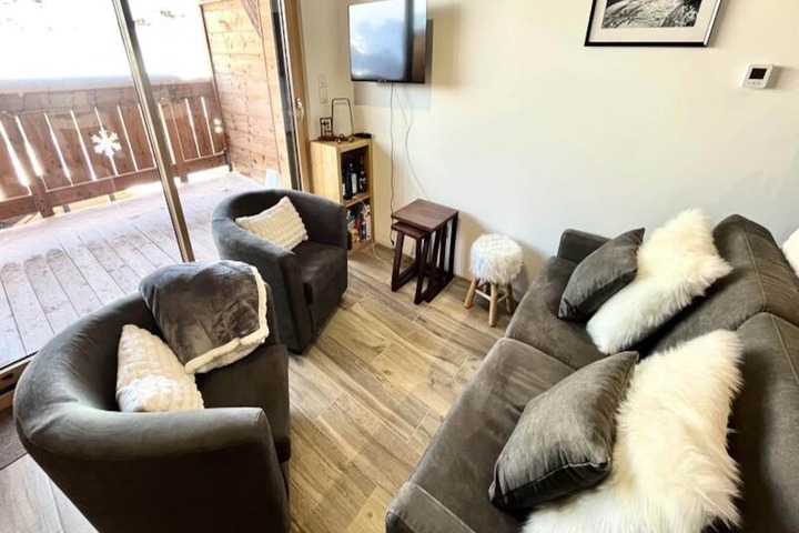 Amidst the serene beauty of the French Alps, this modern duplex apartment in the Le Cristal residence offers a perfect blend of comfort and convenience for your alpine getaway. Located at an altitude of 1350m, the residence sits directly at the foot of the Espace Diamant slopes, making it an ideal choice for ski enthusiasts. With the Mont Rond chairlift and ski school just steps away, your days can begin effortlessly with thrilling descents or scenic exploration. The northwest-facing terraces provide breathtaking views of Mont Charvin and the surrounding peaks, immersing you in the majestic alpine atmosphere. \n\nThe apartment spans two levels and accommodates up to six guests. On the first level, you’ll find a fully equipped kitchen with modern appliances, a cozy lounge area with a television, and a dining space that opens onto the first terrace. Upstairs, two thoughtfully designed bedrooms offer comfort and flexibility, with one featuring a double bed and bunk beds, and the other a queen-size bed with access to the second terrace. A spacious bathroom with double vanity and a washing machine ensures convenience, while ample storage throughout the apartment adds to its functionality. \n\nIn summer, the region transforms into a haven for outdoor enthusiasts. The Mont Rond chairlift operates three days a week, whisking visitors to panoramic views of Mont Blanc. Hiking trails and mountain bike paths crisscross the area, while Flumet lake, just 7 km away, offers leisure facilities for family-friendly fun. Nearby destinations such as Megève, Chamonix, and Annecy provide opportunities for cultural exploration, fine dining, and breathtaking scenery. \n\nWhether you seek adventure or tranquility, this apartment’s prime location and thoughtful amenities make it an exceptional choice for year-round alpine escapes. With WiFi, private parking, and a ski locker included, your stay promises both comfort and unforgettable memories.