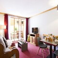 This cozy apartment offers a living room with a pull-out sofa bed, a bedroom with a double bed, and a bathroom with separate toilets. Pets are allowed with an additional charge, and bed linens are provided. The residence features a heated indoor swimming pool and sauna for relaxation after outdoor activities. Wi-Fi is available for an extra fee, and a television is included in each apartment.
