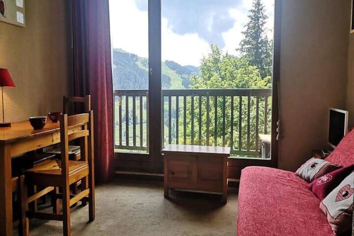 Imagine waking up to the serene beauty of Mont Rond, with its majestic peaks bathed in sunlight, right from the comfort of your south-facing balcony. This charming 19 m² studio apartment, located on the first floor, offers a cozy alpine retreat perfect for couples or small families. With its warm and functional layout, it’s an ideal base for your mountain adventures. The entrance features two bunk beds (note: the upper bunk is not suitable for children under 6), while the living room includes a comfortable sofa bed. A well-equipped kitchenette and a bathroom with a toilet complete the space, ensuring all the essentials are at your fingertips.\n\nJust 100 meters away, a snow-covered path leads you to the Espace Diamant ski slopes, making it effortless to dive into your favorite winter sports. After a day on the slopes, store your gear in the convenient ski locker and relax in your cozy haven. The property also includes an unreserved outdoor parking space for added convenience. For your daily needs, a mini-market and a pizzeria are just 600 meters away, while the charming village center of Notre-Dame-de-Bellecombe is easily accessible by car, free shuttle, or even on skis, just 3.5 km away.\n\nWhether you’re here for skiing, hiking, or simply soaking in the breathtaking alpine views, this studio is the perfect starting point for your adventures. Additional services like bed linen, towels, Wi-Fi, and baby kits are available upon request, ensuring a hassle-free stay. Create unforgettable memories in this idyllic mountain escape, where the beauty of the French Alps is yours to explore.