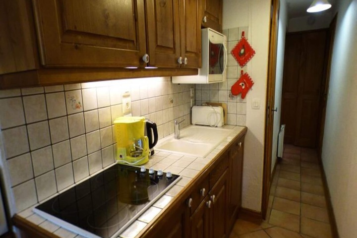 In the serene Forêt des Rennes II area, this charming ground-floor apartment offers a tranquil escape just moments from the heart of the slopes. Surrounded by the peaceful ambiance of the forest, this residence is perfectly situated near the ESF ski school meeting points and a convenient sports shop, making it an ideal choice for families and ski enthusiasts alike. Wake up to the crisp alpine air and enjoy your morning coffee on the east-facing balcony, where you can take in the soft glow of the sunrise over the mountains. \n\nInside, the apartment is thoughtfully designed to provide both comfort and functionality. The living room invites you to unwind after a day of adventure, while the fully equipped kitchenette makes preparing meals a breeze. The cozy bedroom features a double bed, and the sleeping alcove with bunk beds is perfect for children or additional guests. Please note, the top bunk is not suitable for children under six years old. The bathroom, complete with a toilet, ensures all the essentials for a comfortable stay are at hand.\n\nBeyond the apartment, the location offers easy access to the slopes and nearby amenities. Whether you're dropping off little ones at ski school or picking up gear at the sports shop, everything you need is just a short walk away. In the evenings, explore the vibrant atmosphere of the nearby resort, where après-ski activities and local dining options await.\n\nThis cozy retreat combines the convenience of a prime location with the serenity of a forest setting, promising a memorable alpine getaway for families, couples, or small groups. Whether you're here to ski, relax, or simply soak in the beauty of the French Alps, this apartment is your perfect home base.
