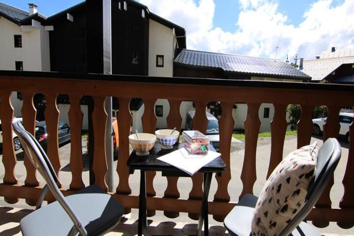 In the heart of the bustling shopping district of Albertville, this charming 2-room apartment offers a cozy retreat for travelers seeking convenience and comfort. Situated on the raised ground floor of a residential building, the property boasts a south-facing balcony where you can unwind and soak in the alpine atmosphere. While the vibrant surroundings bring the convenience of nearby shops and bakeries, guests should note the potential for some late-night noise due to its central location. \n\nThe apartment is thoughtfully designed to accommodate up to six guests. It features a fully equipped kitchen ideal for preparing meals after a day of exploring, a living room with a comfortable double sofa bed, a windowless bedroom with a double bed, and a snug alcove with two bunk beds. The bathroom includes a toilet, and there is an additional separate toilet for added convenience. Families with young children should be aware that the top bunk is not suitable for children under six. \n\nAlbertville’s central location makes it an excellent base for exploring the surrounding region. Whether you’re here to enjoy the winter sports of the nearby ski resorts or to discover the beauty of the French Alps in summer, everything is within easy reach. The apartment’s proximity to shops, bakeries, and local amenities ensures a hassle-free stay. \n\nClassified as a 2-star furnished tourist accommodation, this property combines practicality with a touch of alpine charm, making it a perfect choice for families or small groups looking to experience the best of Albertville and its surroundings.