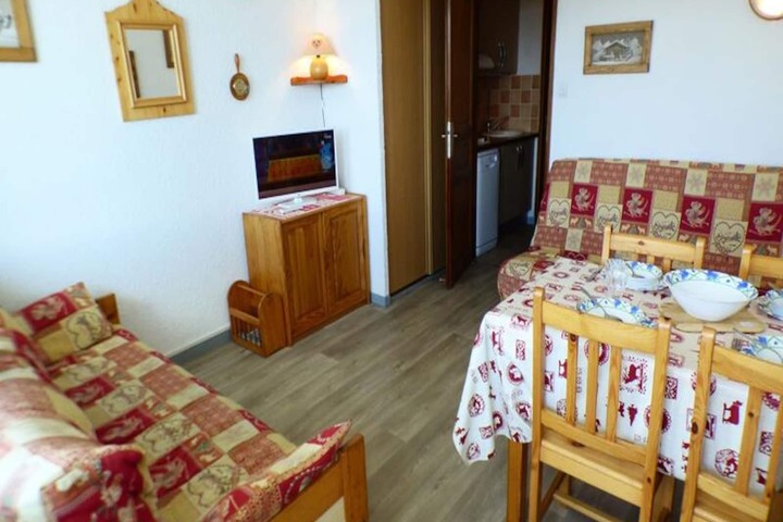 High above the charming resort, this cozy studio apartment offers a serene retreat with breathtaking views of Mont Bisanne and the majestic Beaufortain mountain range. Bathed in sunlight from its south-facing balcony, this inviting space is perfect for couples or small families seeking a tranquil alpine escape. The residence’s prime location ensures you’re just a short five-minute walk from the downhill ski lifts and local shops, making it an ideal base for both winter sports enthusiasts and summer adventurers. \n\nInside, the apartment is thoughtfully designed to maximize comfort and functionality. The living area features a double sofa bed and a pull-out sofa bed, providing flexible sleeping arrangements for up to four guests. The fully equipped kitchenette invites you to prepare delicious meals after a day of exploration, while the compact bathroom offers all the essentials for a relaxing stay. Situated on the second floor of the residence, the apartment enjoys a peaceful ambiance, though please note there is no elevator access. Additionally, guests can take advantage of an unassigned parking space conveniently located next to the building.\n\nBeyond the comforts of the apartment, the surrounding area is a paradise for outdoor enthusiasts. In winter, the nearby ski lifts provide seamless access to pristine slopes, while summer transforms the region into a haven for hikers and nature lovers. The picturesque village atmosphere, combined with the stunning alpine scenery, creates an unforgettable holiday experience. Whether you’re here to carve through fresh powder or explore lush mountain trails, this residence offers the perfect blend of convenience and charm.