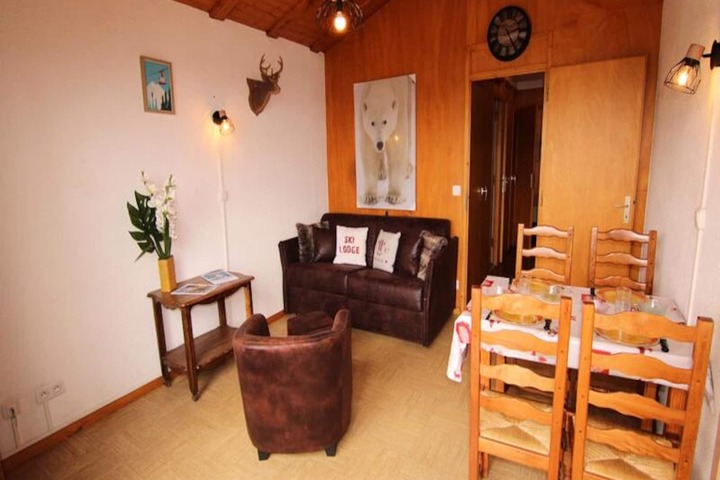 Bask in the charm of the French Alps with this cozy 2-room apartment, perfectly situated in the heart of the resort. Overlooking the majestic Mont Bisanne, this south-facing retreat offers a warm and inviting atmosphere, ideal for a memorable alpine getaway. Whether you’re here for the snow-covered slopes in winter or the lush green trails in summer, this residence places you at the center of it all, with shops and amenities just a short stroll away. \n\nLocated on the second floor of a charming building, the apartment features a south-facing balcony where you can soak in the breathtaking mountain views. Inside, the space is thoughtfully designed to accommodate up to five guests. The living room includes a comfortable double sofa bed, while the bedroom offers bunk beds with a double bed below and a single above (note: the upper bunk is not suitable for children under six). A fully equipped kitchenette allows you to prepare delicious meals, and the bathroom with a separate toilet ensures convenience for all guests. \n\nThe residence’s central location means you’re never far from the action. Explore the vibrant local shops, savor regional delicacies at nearby restaurants, or embark on thrilling outdoor adventures. In winter, enjoy easy access to the ski slopes, and in summer, discover scenic hiking trails and breathtaking alpine landscapes. \n\nWith its cozy ambiance, practical amenities, and unbeatable location, this apartment is the perfect base for creating unforgettable memories in the heart of the French Alps.