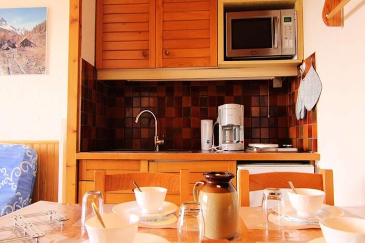 Basking in the warmth of the French Alps, this charming studio apartment offers a cozy retreat for travelers seeking comfort and convenience. Located near the heart of the resort, it provides easy access to all amenities and a groomed path leading directly to the slopes, ensuring that your alpine adventures are just moments away. The south-facing balcony invites you to soak in the mountain sunshine and enjoy serene views after a day of exploration. \n\nInside, the apartment is thoughtfully designed to maximize space and comfort. The living room features a 140cm sofa bed, perfect for unwinding after an active day, while the open-plan kitchenette is fully equipped for preparing your favorite meals. The sleeping alcove, with its bunk beds (2 x 90cm), offers a cozy nook for restful nights, though the upper bunk is not suitable for children under six. A separate bathroom and toilet ensure added convenience for guests. Please note, the apartment is located on the second floor without elevator access and is not suitable for individuals with mobility challenges.\n\nThe residence’s prime location places you close to the resort center, where you’ll find shops, restaurants, and entertainment options to enhance your stay. Whether you’re here for skiing in the winter or hiking in the summer, this apartment serves as the perfect base for your alpine getaway. With its classification as a 1-star furnished tourist accommodation, it offers a simple yet welcoming atmosphere for couples or small families.\n\nChoose this delightful studio for its unbeatable location, practical amenities, and the promise of unforgettable moments in the heart of the Alps. Whether you’re chasing powdery slopes or scenic trails, this is your gateway to the best of mountain living.