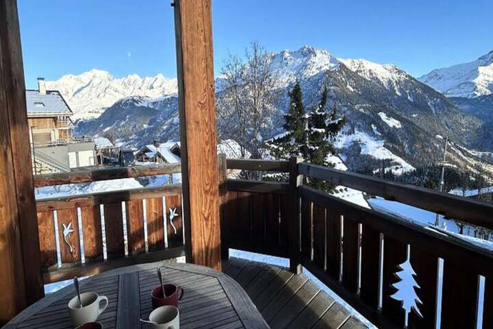 In the serene embrace of the French Alps, this detached chalet offers a harmonious blend of alpine charm and modern comfort. Situated just a 5-minute drive from the heart of Les Saisies resort, it is nestled within a picturesque cluster of small chalets, with breathtaking south-facing views of Mont Blanc and the Beaufortain mountain range. Whether you're seeking adventure or tranquility, this chalet provides the perfect retreat for every season. \n\nSpanning three levels, the chalet is thoughtfully divided into two separate apartments. The ground floor features a cozy 3-room apartment with a fully equipped kitchen opening onto a warm living and dining area. It includes a double bedroom, a bunk bedroom (note: the top bunk is not suitable for children under 6), a shower room with WC, and an additional separate WC. The upper floors house a spacious 5-room apartment, boasting an open-plan kitchen and living room, a master suite with a queen-size bed and en-suite shower room, and three additional master suites, each with en-suite shower rooms. Balconies on both levels provide stunning panoramic views, perfect for soaking in the alpine beauty. \n\nLes Saisies, known for its exceptional skiing and outdoor activities, is just moments away. In winter, enjoy access to pristine slopes, while summer brings opportunities for hiking, cycling, and exploring the lush Beaufortain landscapes. The chalet’s proximity to local amenities ensures convenience, while its peaceful setting offers a true escape. \n\nWith end-of-stay cleaning included and a welcoming ambiance, this chalet is your gateway to unforgettable alpine memories, whether you're planning a family getaway or a retreat with friends.