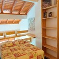 This cozy studio apartment, located in the Archeboc Residence, offers a comfortable stay for up to 5 guests. It features a living area with an 80x190 cm pull-out sofa bed, a mezzanine with a 140x190 cm double bed, and a sleeping nook with 2 80x190 cm bunk beds, separated by a curtain. The apartment is not pet-friendly, ensuring a peaceful environment for all guests. Bed and bathroom linen are available at an extra cost, and a deposit is required upon arrival.