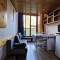 This cozy 2-room duplex apartment in the Aiguille Grive 1 residence comfortably accommodates up to 5 guests, making it perfect for small families or groups. Located on the 5th floor with a northeast-facing balcony, the apartment features a mezzanine bedroom with a double bed (140x190 cm) and an additional sleeping area with a single bed (80x190 cm) and a pull-out sofa bed (120x190 cm). It is also pet-friendly, allowing you to bring your furry companions for an additional fee. The apartment is equipped with all the essential amenities, including a television in the living room, free Wi-Fi, and a baby bed upon request.