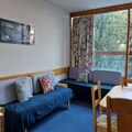 This 25m² studio apartment, located on the 5th floor of the Miravidi Residence, comfortably accommodates up to 4 people. It features two single beds in the living room, along with a mountain corner equipped with a single bed and a pull-out bed. The apartment is pet-friendly with an additional fee and includes duvets for each bed. Bed and bathroom linen are available for an extra charge. A deposit is required on arrival. The studio has a North-East facing balcony, offering a peaceful outdoor space.