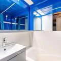 The kitchen area, open to the living room, is fully equipped with essential appliances for a self-catered stay, including a fridge, stove, and microwave. The apartment includes two bathrooms, one with a bath and WC, and the other with a shower, sink, and WC. Additional services like bed linen, towels, and end-of-stay cleaning are available for a fee, along with optional Wi-Fi access and a baby kit (subject to availability).