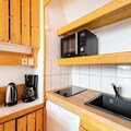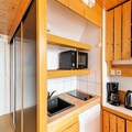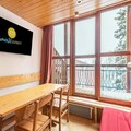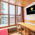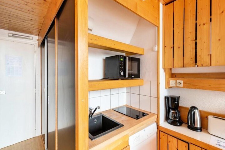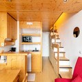 This charming apartment in the Arc 1800 ski resort accommodates up to 6 guests with a spacious living room featuring a sofa bed for two and a wooden dining area. The two mezzanine bedrooms include a queen-size bed with memory foam mattress and a double bed with new bedding. The apartment is pet-friendly, making it perfect for those traveling with pets. It also offers convenient storage, a balcony, and a TV for your comfort.