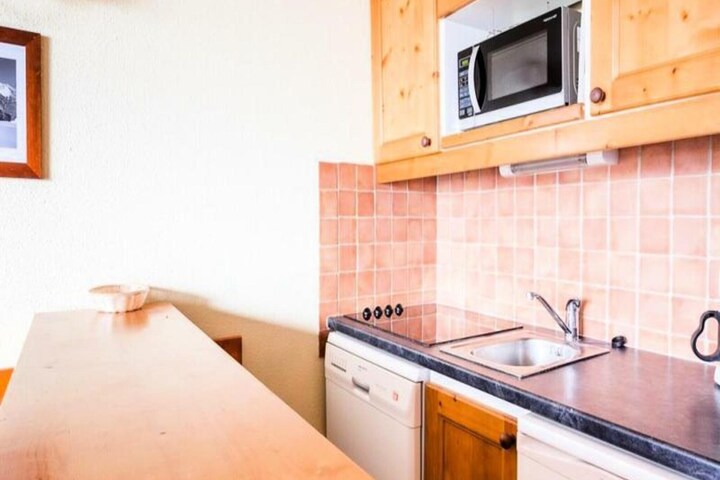The apartment is ideally located just 300 meters from the slopes, with easy access to nearby attractions, cafes, and shops. A seasonal ski shop is available in the district, and a food store is located in Les Villards, around a 10-minute walk away. The resort area offers a variety of activities, including skiing, hiking, and dining options. A free shuttle service operates during the summer period for added convenience.