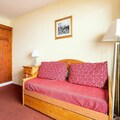 This charming 2-room apartment comfortably accommodates up to 5 guests. The living room features a trundle bed, a daybed, and a cozy sofa, while the bedroom includes two single beds. The property is pet-friendly, ensuring your furry friends are welcome to join. Guests can enjoy a balcony with stunning mountain views, west-facing for beautiful sunsets. A dedicated, covered parking spot is available for added convenience.
