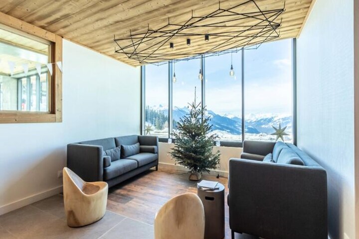 The apartment is fully equipped for self-catering with a modern kitchen, including a fridge, dishwasher, oven, microwave, induction hob, and De'Longhi coffee maker. The spacious living room features a 65-inch TV and access to a 12m² terrace. It also offers a shower room, separate toilet, and ample storage. Additional services include concierge, ski room with dryers, and ski rentals at the on-site NETSKI store. With panoramic views and luxurious amenities, it’s the perfect base for your alpine getaway.