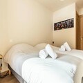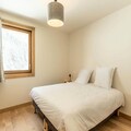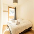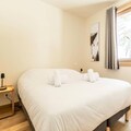 This luxurious 6-room apartment, located at the foot of the slopes, offers 106 m² of space for up to 12 people. It features 1 double bedroom (180x200 cm), 2 twin beds (90x190 cm), 1 double bed (180x200 cm), 2 sets of bunk beds (4 beds total), and a mountain corner with a double bed (140x190 cm). The apartment is non-smoking and pet-free, with underfloor heating, beds made on arrival, and bathroom linens included. Three covered parking spaces are available.