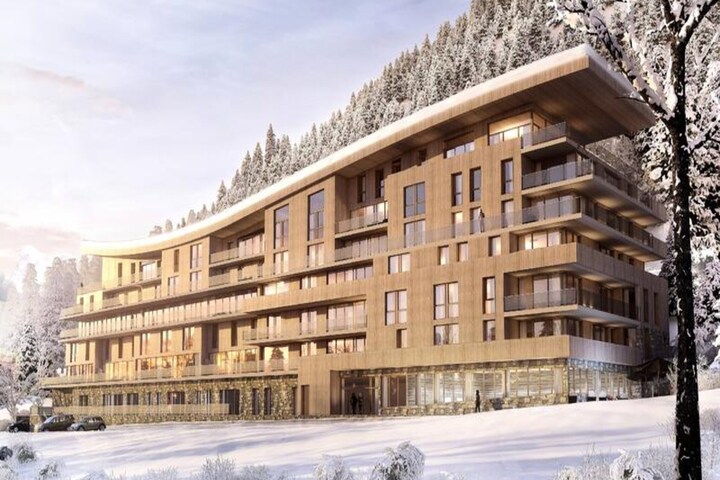The fully equipped kitchen features an induction hob, dishwasher, and two coffee makers. The apartment includes three bathrooms, each with towel dryers, and a terrace with mountain views. Guests can unwind at the wellness area, complete with a heated pool, sauna, hammam, and gym, or enjoy the ski room with boot dryers. A concierge, ski shop, and grocery service add to the convenience of this exceptional mountain getaway.
