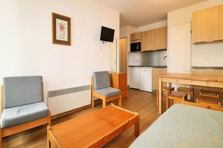 The apartment features a well-equipped kitchen with an electric hob, oven, microwave, and dishwasher, allowing guests to prepare meals at their convenience. A shower room and a separate toilet add comfort and privacy, while an underground parking space provides convenient and secure parking. The building is accessible via elevator, and guests are required to pay a supplement for end-of-stay cleaning, as well as sheets and towels, which are not included in the rental price.