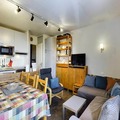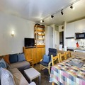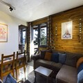 This charming 3-room apartment, ideal for up to 6 people, is located on the 6th and top floor of a ski-in/ski-out residence. The apartment features one bedroom with two single beds and a second bedroom with two sets of bunk beds. There is a spacious living area with a sofa and TV, perfect for relaxing after a day on the slopes. The property is non-pet friendly and does not include sheets and towels in the rental price, with a supplement available for those services.