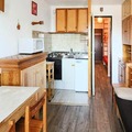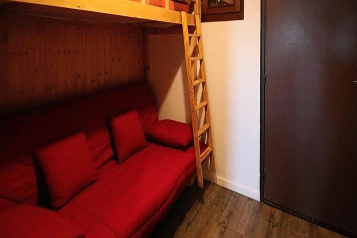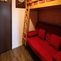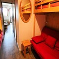 This cozy studio cabin, located in a residence with 115 apartments and an elevator, accommodates up to 5 people. The living area includes a double convertible sofa and a single folding bed, while the alcove provides 2 bunk beds for additional sleeping space. The property is pet-free and includes modern amenities such as a flat-screen TV and heating. Guests also benefit from a basement parking space included in the rental, ensuring convenience and ease of access.