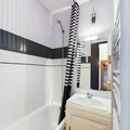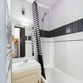 Inside, the apartment includes a fully equipped kitchenette with 3 electric hotplates, a refrigerator, combined microwave oven, and a dishwasher, allowing guests to prepare their meals comfortably. The bathroom and separate toilet provide additional convenience, ensuring a comfortable and functional stay for all guests.