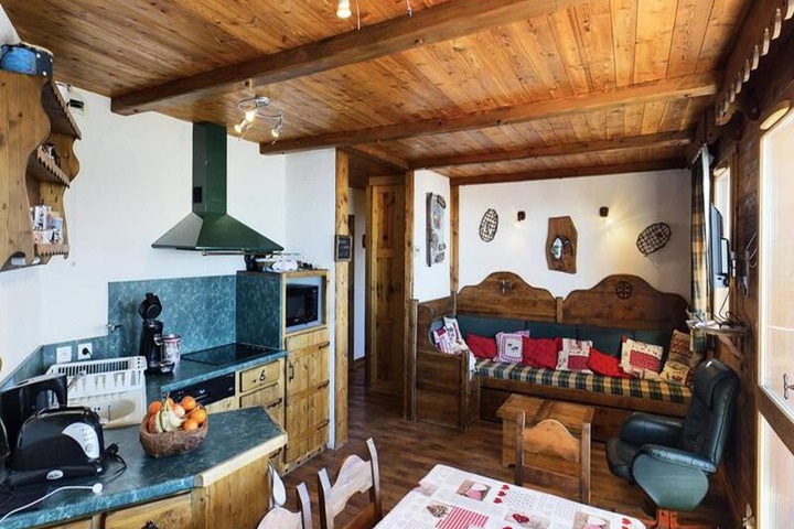This cozy apartment is located in a well-positioned residence, offering a comfortable stay for up to 5 people. The apartment features a spacious living room with a sofa and pull-out bed, perfect for relaxing after a day of adventure. The bedroom includes a large double bed, while a separate cabin offers two bunk beds. The property is non-smoking and pet-free, ensuring a peaceful environment for all guests.