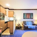 The apartment is equipped with a fully functional kitchen, allowing guests to prepare their meals with ease. The bathroom and separate WC add extra comfort and privacy. Guests also enjoy access to on-site amenities, including a heated outdoor pool and spa area. For those traveling by car, parking is available for a fee, and a variety of services are offered to enhance your stay.