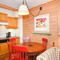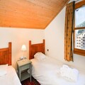 The apartment features a well-equipped kitchen, ideal for preparing meals, and two bathrooms—one with a bathtub and separate WC and another with a shower. The property also includes a balcony, providing scenic views. Additional amenities include access to the heated outdoor pool, sauna, and parking (available for an additional fee). The apartment is located in the Hameau du Glacier building, with an elevator for easy access to all floors.
