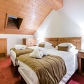 This spacious and modern chalet offers a comfortable stay with five bedrooms, including a suite, and two bathrooms with a total of three separate toilets. The living area features a cozy sofa bed and a large dining table that accommodates up to 12 people. The property is pet-friendly for an additional fee, allowing your pets to join the adventure.