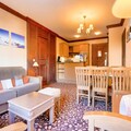 This cozy apartment is perfect for a family or group getaway, offering two comfortable bedrooms and a spacious living area. One bedroom is equipped with a double bed, while the second features two single beds and a set of bunk beds. The apartment also includes two bathrooms with bathtubs, a fully furnished kitchen, and a living room with a sofa bed. The property is pet-friendly, with some restrictions, and comes with convenient amenities such as free Wi-Fi, a flat-screen TV, and ski-in/ski-out access. End-of-stay cleaning is included, ensuring a hassle-free vacation.