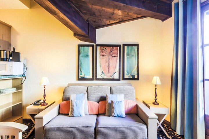 This cozy apartment features a comfortable bedroom with two single beds, perfect for a small group or family. The living area includes a sofa bed that can sleep two additional guests, a dining table for four, and a fully equipped kitchen for your convenience. The property is pet-friendly, with prior arrangements and an additional fee required. Other amenities include a television, heating system, and Wi-Fi access to ensure a pleasant stay.