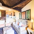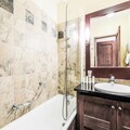 The apartment is well-equipped for self-catering with an open-plan kitchen, which includes all the necessary appliances. The bathroom features a bathtub-shower combination, and there is a separate WC for added convenience. The property also offers access to shared amenities, including a heated outdoor pool, fitness center, and sauna (subject to availability), as well as housekeeping services and linens provided. Parking is available for an additional fee.