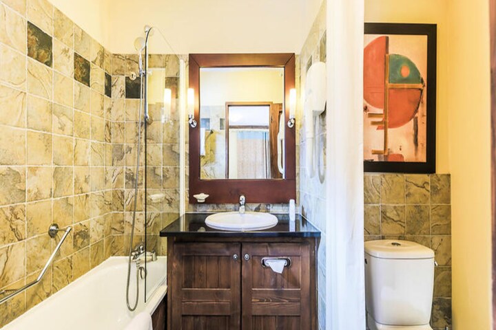 This spacious holiday home features two comfortable bedrooms, including a king-size bed and two single beds, ideal for small families or groups. The living area offers a sofa bed for additional guests. The property is pet-friendly, with an additional charge, and provides a range of amenities such as Wi-Fi, television, and heating for a cozy stay. A separate WC and two bathrooms, one with a bathtub-shower combo and another with a shower, ensure convenience and comfort.