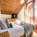 This elegant holiday apartment offers a spacious living area with a large sofa bed, two comfortable bedrooms, and two modern bathrooms. One bedroom includes a double bed, while the second offers either two single beds or a queen bed. The apartment is pet-friendly (additional fees may apply) and includes amenities such as a 50-inch Smart TV, Wi-Fi, and a fully equipped kitchen. Guests can enjoy stunning views of Mont Blanc and Arc 2000 from the two balconies.
