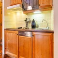 The apartment includes a fully equipped American-style kitchen, a well-maintained bathroom, and a separate toilet. Additional features include a washing machine and tumble dryer, making long stays more convenient. Access to a communal heated outdoor pool is available, along with optional parking (reservation required). The combination of amenities and location makes this apartment a perfect choice for an unforgettable mountain getaway.