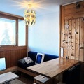 Designed to accommodate up to four guests, the 31m² apartment is thoughtfully arranged to maximize comfort and functionality. The sleeping alcove features a double bed, while a separate bedroom with bunk beds ensures privacy and practicality for families or small groups. The kitchen is fully equipped with modern appliances, including induction hobs, a combination oven, and a dishwasher, making it easy to prepare hearty meals after a day on the slopes. A spacious bathroom with a bathtub and a separate toilet adds to the convenience, while a television and ski locker enhance your stay.
