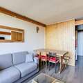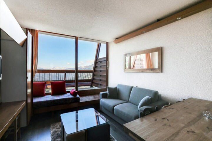 High above the Tarentaise Valley, where the crisp alpine air invigorates the senses, this charming residence offers a tranquil retreat in the heart of Arc 1600. With its traditional architecture and breathtaking views, it invites you to immerse yourself in the serene beauty of the French Alps. Whether you're seeking the thrill of skiing or the peaceful allure of summer hikes, this apartment is your gateway to unforgettable mountain adventures. Just steps from the slopes and a short walk to the resort center, you'll find the perfect balance of convenience and calm. \n\nInside, the 42m² apartment is thoughtfully designed to accommodate up to six guests. The living room features a cozy sofa bed, while the bedroom provides a double bed and two bunk beds, ideal for families or small groups. The south-facing balcony offers a private vantage point to admire the valley’s ever-changing hues, from snow-covered peaks to lush summer greenery. A fully equipped kitchen with ceramic hobs, a combination oven/microwave, dishwasher, and refrigerator ensures you have everything needed to prepare hearty meals after a day of exploration. Modern amenities like Wi-Fi, a television, and a washing machine add extra comfort to your stay. \n\nArc 1600 is a haven for outdoor enthusiasts. In winter, the slopes are just a stone's throw away, promising effortless access to world-class skiing. During summer, the region transforms into a paradise of hiking trails, mountain biking routes, and panoramic vistas. The resort center, only five minutes away, offers shops, restaurants, and lively après-ski options, ensuring your evenings are as enjoyable as your days. \n\nWhether you're here to carve through fresh powder or bask in the alpine sun, this residence combines charm, comfort, and an unbeatable location to create a holiday experience that lingers in your memory long after you've left.
